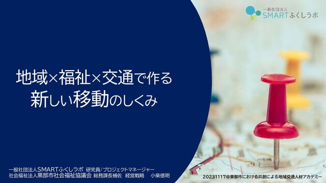 福祉×交通×連携×共創 一般社団法人SMARTふくしラボ 研究員/プロジェクトマネージャー 社会福祉法人黒部市社会福祉協議会 総務課長補佐 経営戦略 小柴徳明