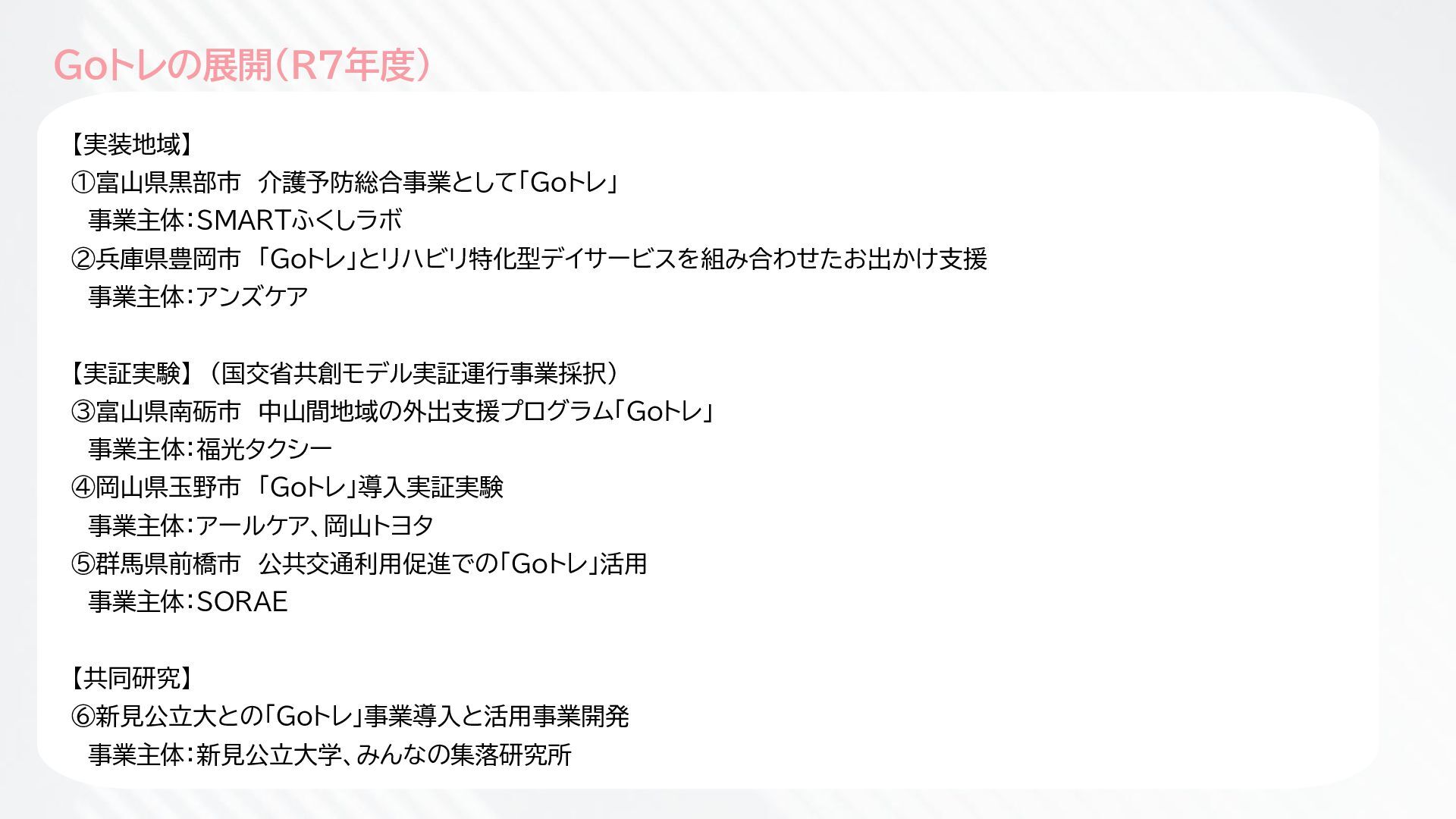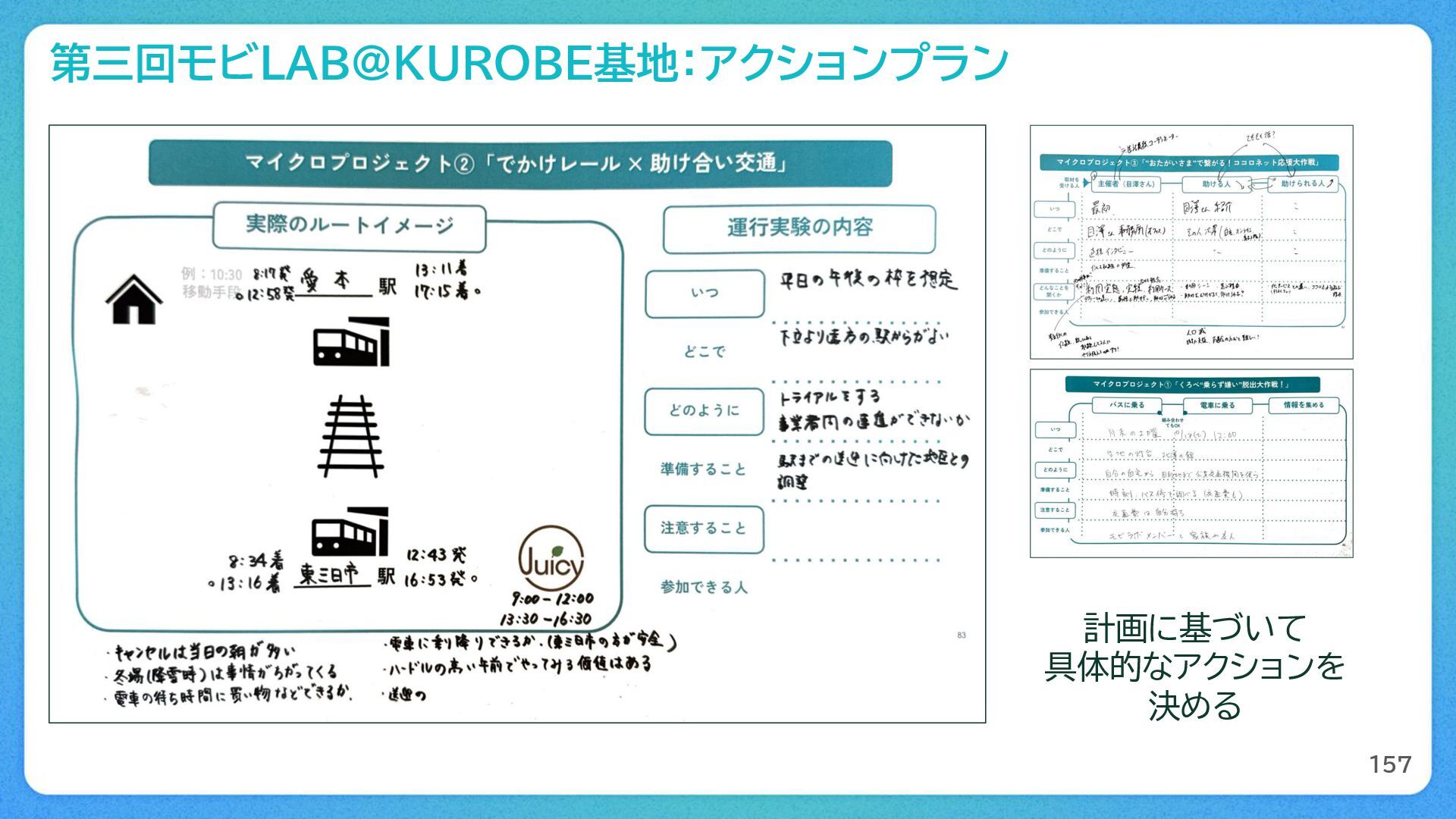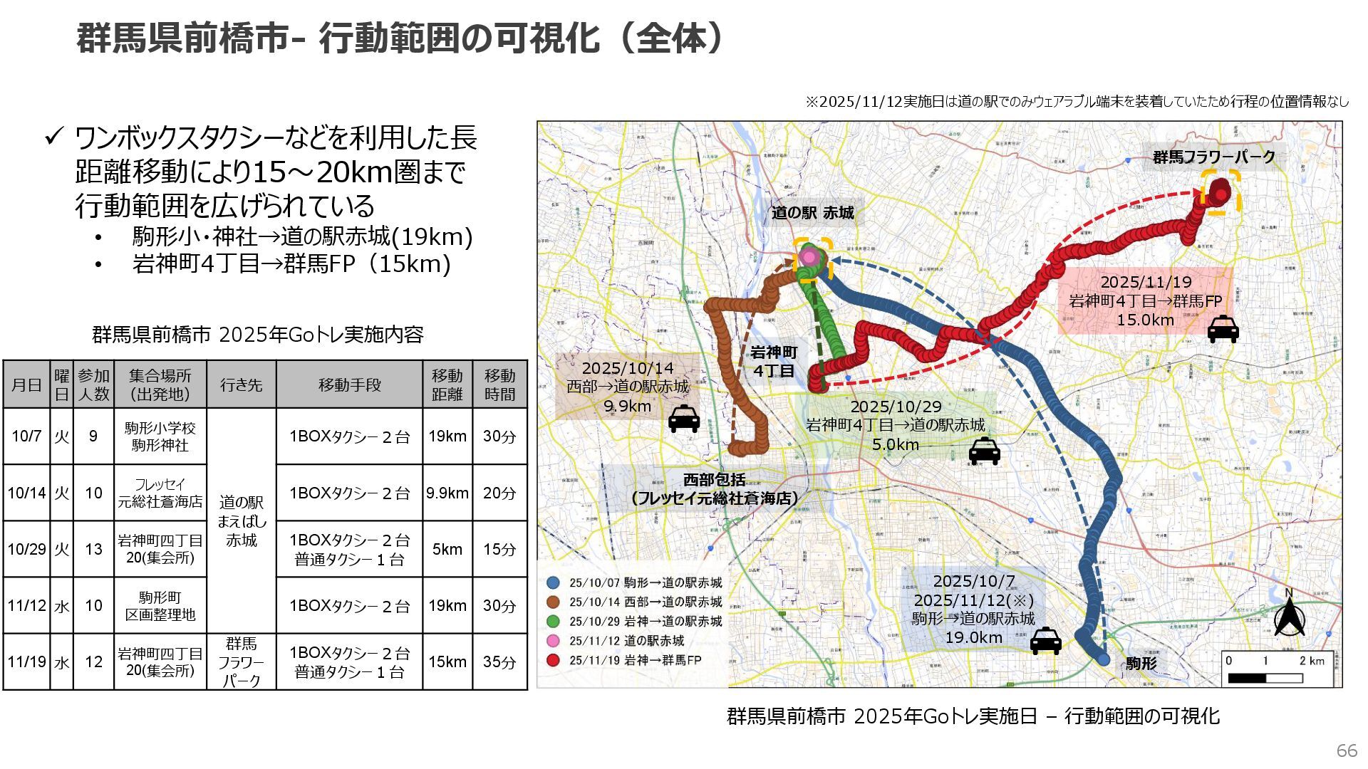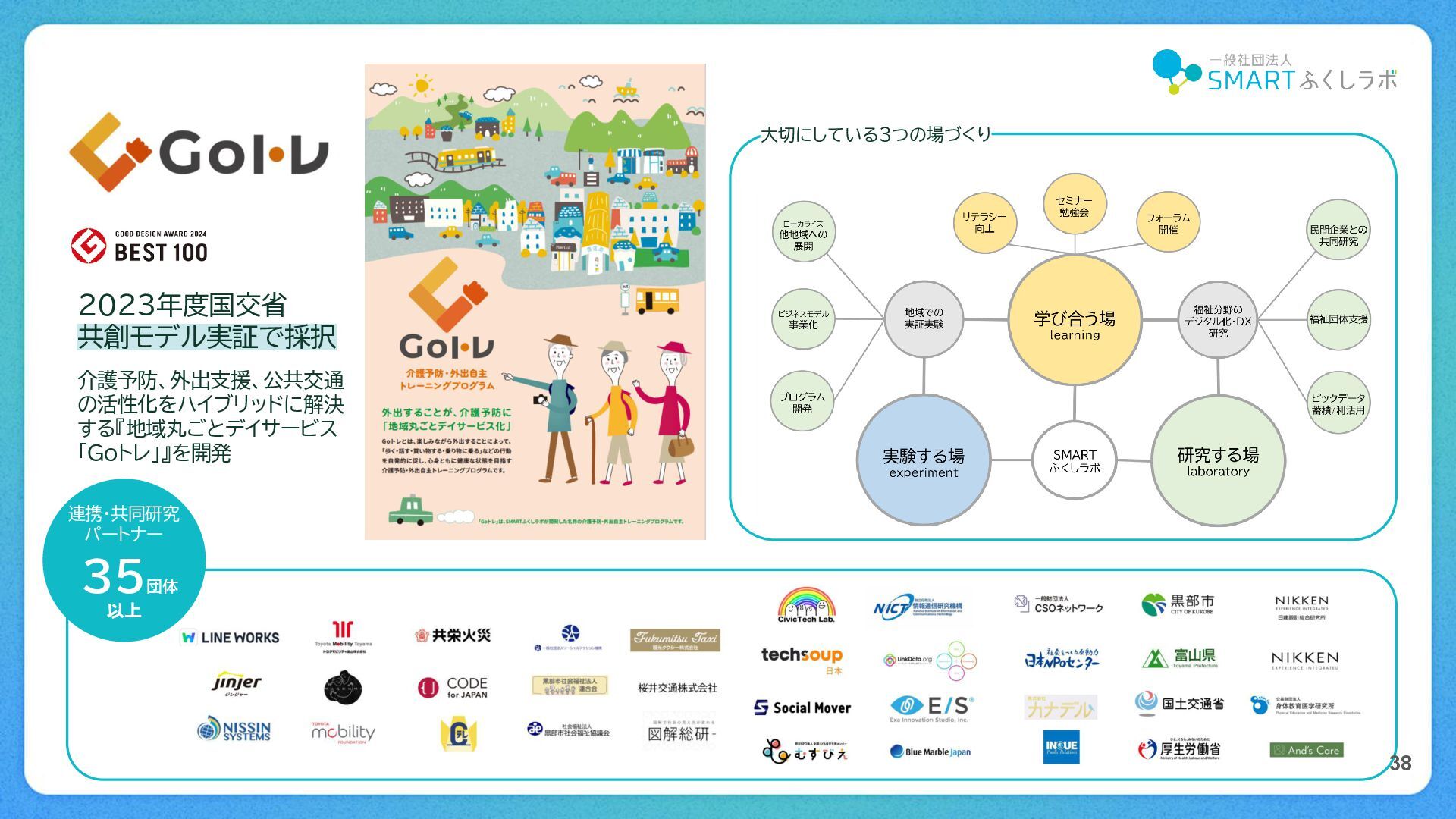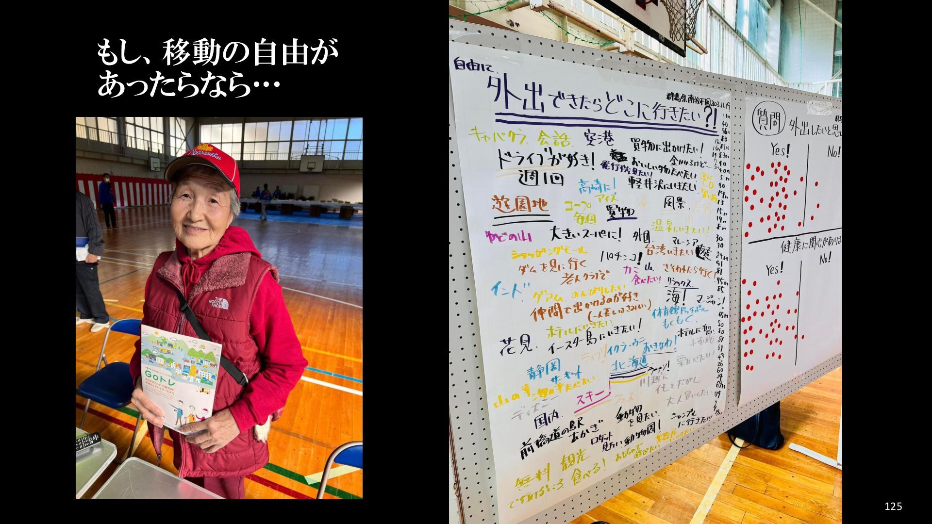 久野 (2013):新潟県見附市における健康教室参加者の医療抑制効果を参照 ※ 久野譜也:ICTと超高齢化対応の「健幸都市」-Smart Wellness Cityによる健康長寿 世界一の実現を目指して-,ICT超高齢社会構想会議第2回WG,2013年1月24日 ※ ✓ Goトレ効果検証データ ① 延べ参加者人数 :388人(黒部211人、寒河江75人、東御82人、南砺20人) ② Goトレ実施日数 :83日(黒部50日、寒河江12日、東御18日、南砺3日) ③ 延べ参加者人数の総歩数量 :864,912歩 ④ 医療費抑制効果 :52,759.6円 ( ③ ×0.061 / 歩 /日) ◆ 黒部市 :526,034歩 ⇒ 医療費抑制効果:32,088.1円 ◆ 寒河江市 :166,201歩 ⇒ 医療費抑制効果:10,138.3円 ◆ 東御市 :123,790歩 ⇒ 医療費抑制効果:7,551.2円 ◆ 南砺市 : 48,887歩 ⇒ 医療費抑制効果:2,982.1円 (参考)年間医療費抑制効果 (各都市の1回あたりの参加者平均総歩数 × 365日) ◆ 黒部市 :10,520.7歩/日 ⇒ 医療費抑制効果:3,840,048円 ◆ 寒河江市 :13,850.1歩/日 ⇒ 医療費抑制効果:5,055,280円 ◆ 東御市 : 6,877.2歩/日 ⇒ 医療費抑制効果:2,510,186円 ◆ 南砺市 :16,295.6歩/日 ⇒ 医療費抑制効果:5,947,918円 ※1 ※2 ※1 本報告書P.2で示したデータ集計対象の延べ参加者数のみ ※2 本報告書P.2で示したデータ集計対象の延べ実施日数のみ、日付被りあり Copyright © 2025 KANADERU.CO.,LTD. All Rights Reserved