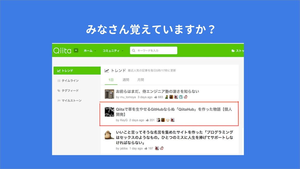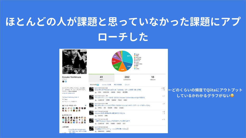 ほとんどの人が課題と思っていなかった課題にアプ ローチした ←どのくらいの頻度でQiitaにアウトプット しているかわかるグラフがない
