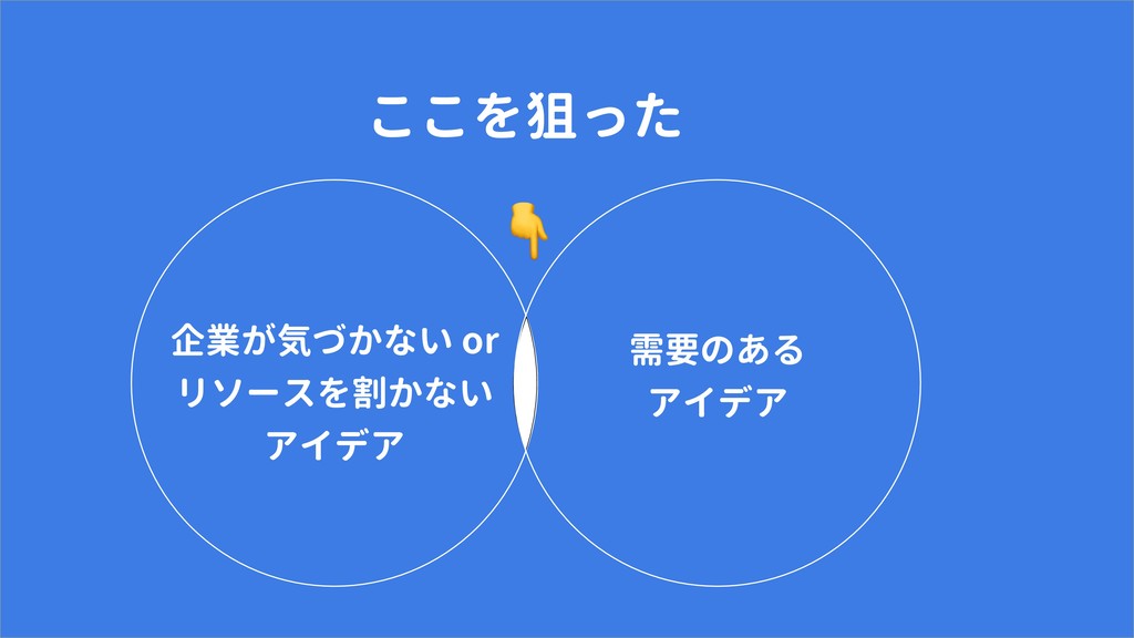 企業が気づかない or リソースを割かない アイデア 需要のある アイデア ここを狙った