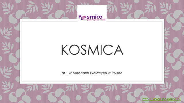 Prezentacja dotyczy jednego z wiodących serwisów ezoterycznych w Polsce. Kosmica.pl przeznaczona jest dla osób szukających pomocy wróżbitów, tarocistów oraz astrologów. Wszystkie najważniejsze informacje na temat portalu można znaleźć w prezentacji bądź na stronie internetowej: http://www.kosmica.pl/magazyn/Ciekawe_artykuly/wrozba.do.