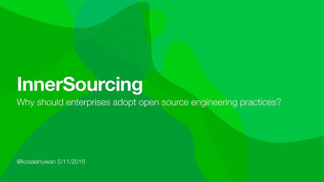 A brief walkthru on InnerSource based on surveys done by Open Source Initiative and InnerSource Commons, to convince enterprises to adopt lessons learned from open source engineering practices and apply them to the way enterprise products are being engineered internally.