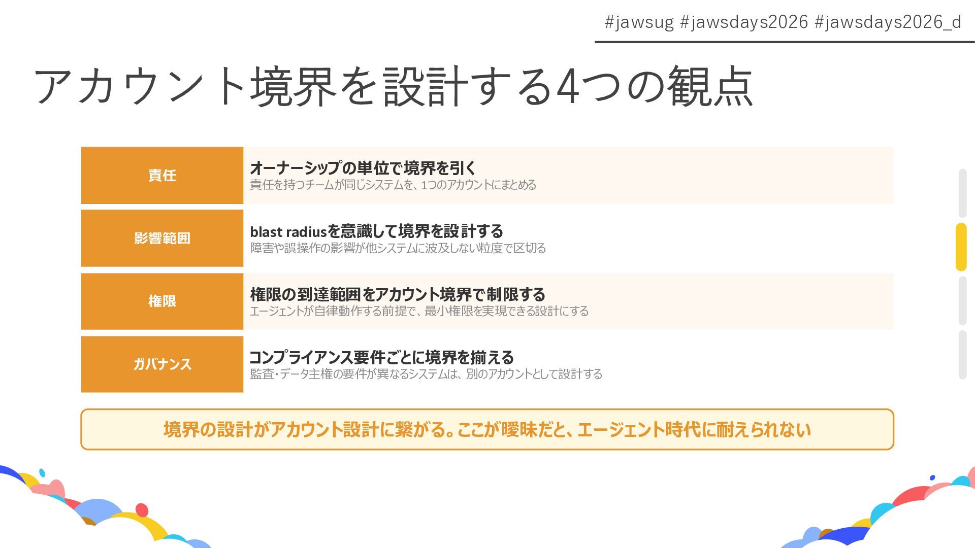 「権限」と「境界」の視点から、AWS Organizationsを活用したマルチアカウント設計を再考します。