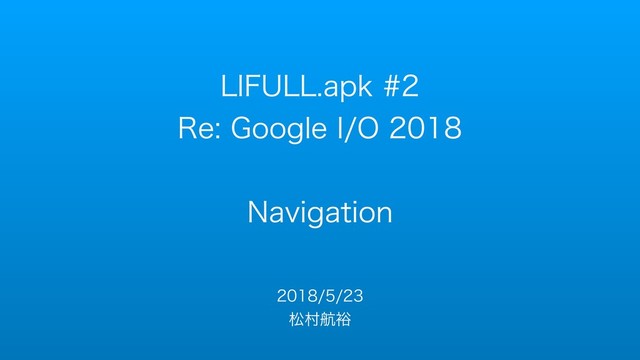 LIFULL.apk #2 - Re: Google I/O 2018(5分LT)の登壇資料です。 Navigationについて簡単にまとめました。他の方とはちょっと違う視点から話してみました。 【Storyboardのことは嫌いでも、Navigationは嫌いにならないでください】