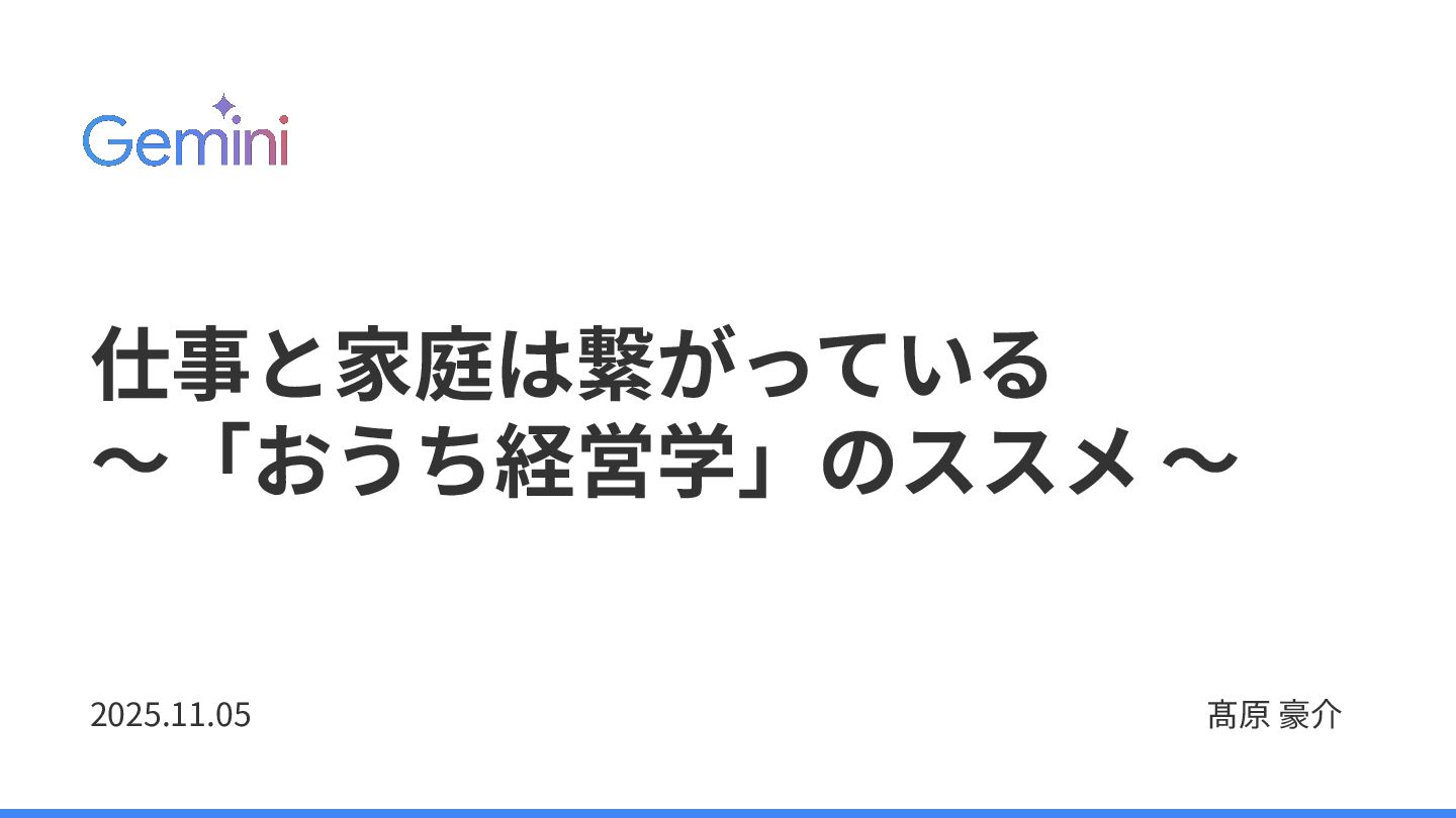 仕事と家庭は繋がっている 〜「おうち経営学」のススメ 〜 2025.11.05 髙原 豪介