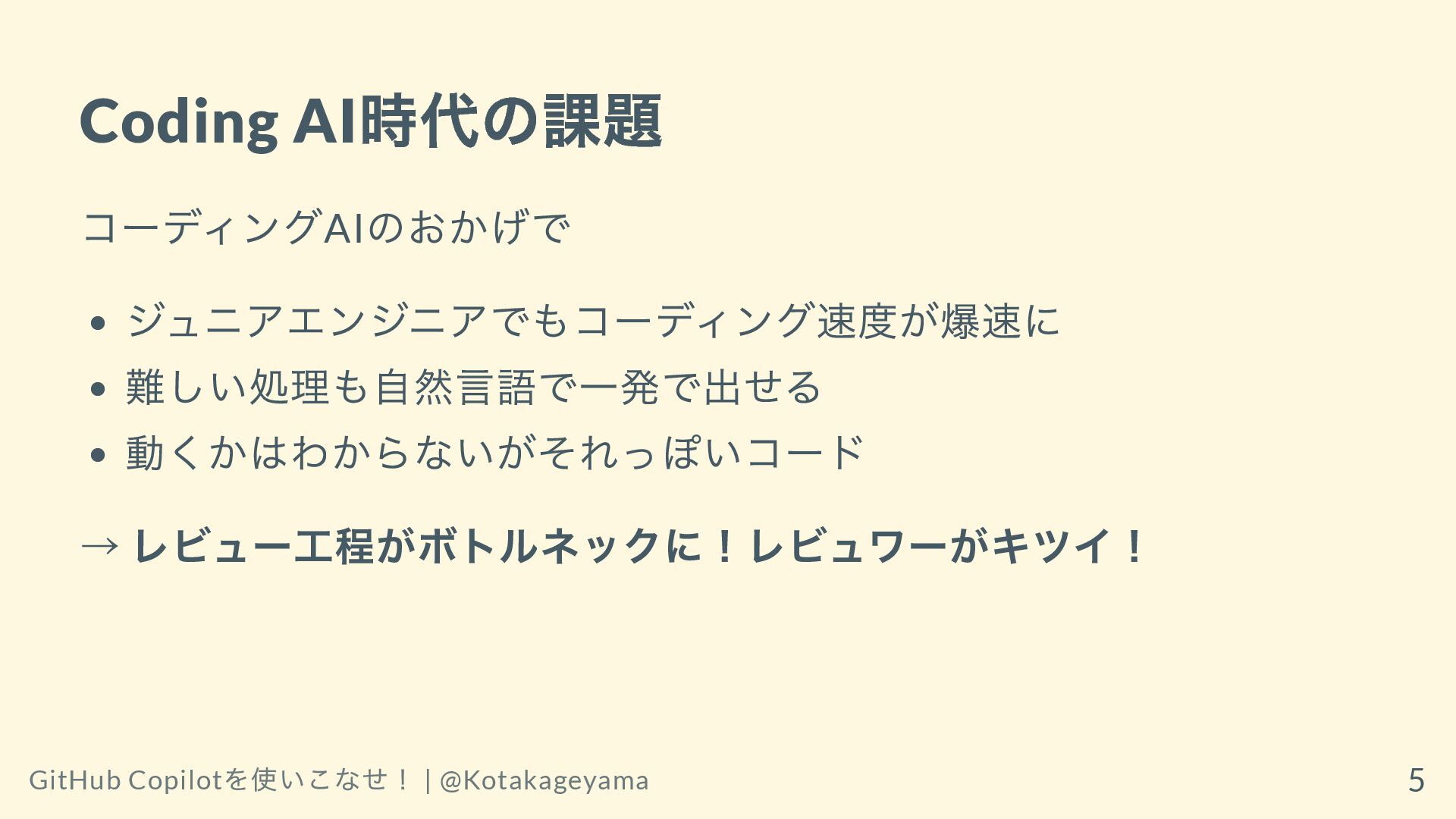 めぐろLT #32 「AI時代のコードレビュー」@三田 で発表した内容です。 https://meguro-lt.connpass.com/event/366355/