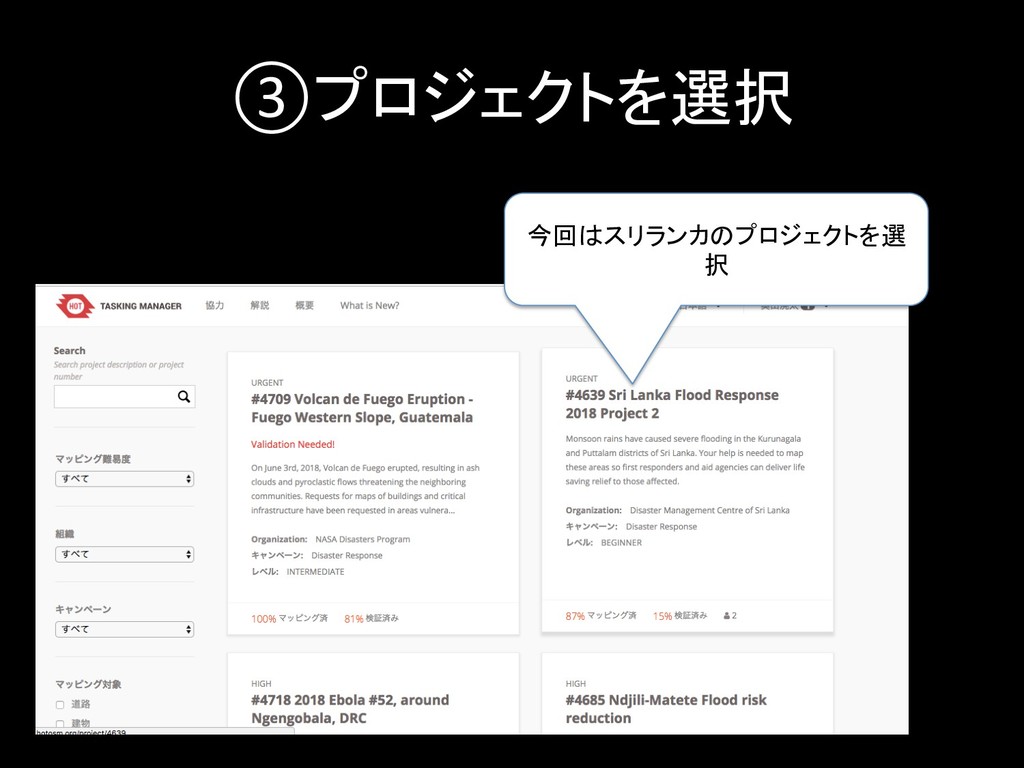 ③プロジェクトを選択 今回はスリランカのプロジェクトを選 択