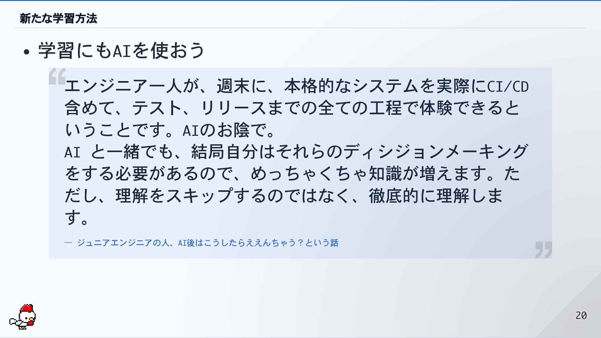 — ジュニアエンジニアの人、AI後はこうしたらええんちゃう?という話 20 20
