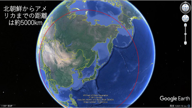 北朝鮮からアメ リカまでの距離 は約5000km