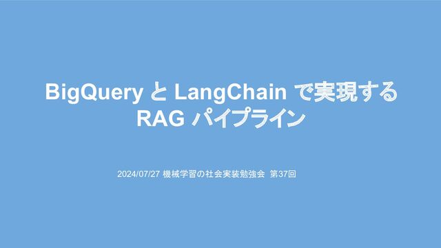 BigQuery と LangChain で実現する RAG パイプライン 2024/07/27 機械学習の社会実装勉強会 第37回