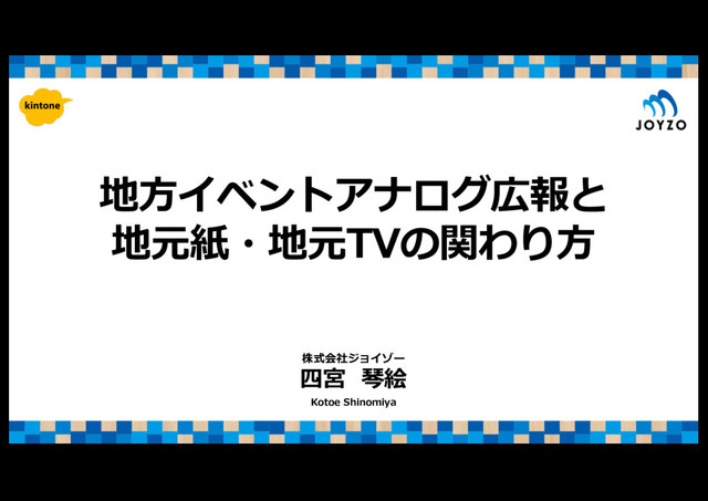 地⽅イベントアナログ広報と 地元紙・地元TVの関わり⽅ 四宮 琴絵 Kotoe Shinomiya 株式会社ジョイゾー