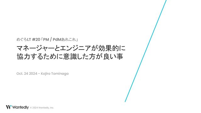 © 2024 Wantedly, Inc. マネージャーとエンジニアが効果的に 協力するために意識した方が良い事 めぐろLT #20 「PM /
