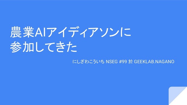 農業AIアイディアソンに 参加してきた にしざわこういち NSEG #99 於 GEEKLAB.NAGANO