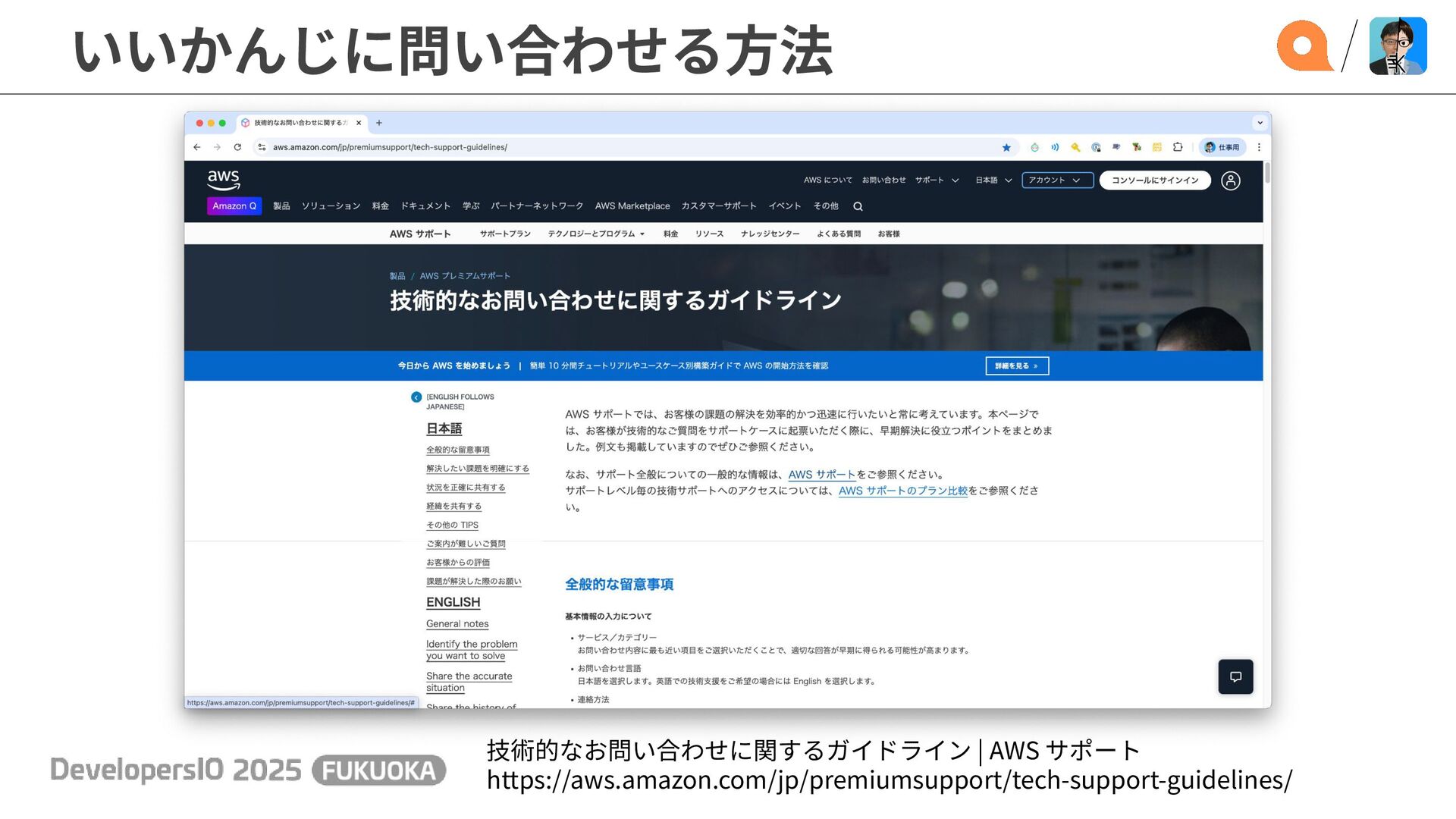 いいかんじに問い合わせる⽅法 技術的なお問い合わせに関するガイドライン | AWS サポート https://aws.amazon.com/jp/premiumsupport/tech-support-guidelines/