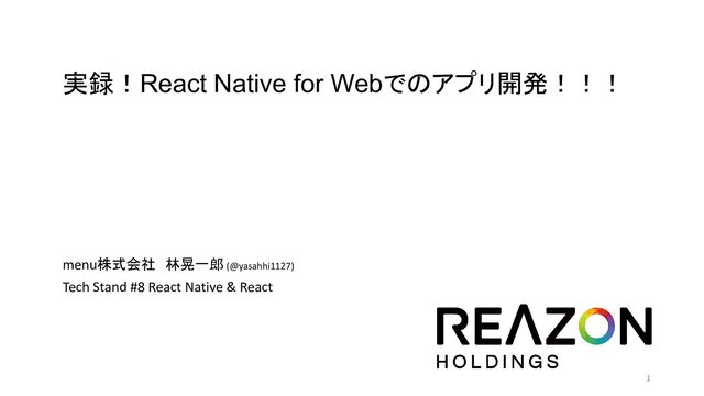 1 実録!React Native for Webでのアプリ開発!!! menu株式会社 林晃一郎 (@yasahhi1127) Tech Stand #8