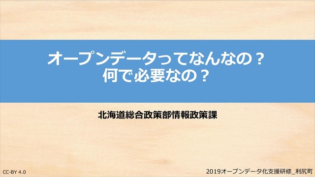 2019年10月31日に北海道利尻町で行われた、オープンデータ化支援研修の北海道庁の資料です。(総務省主催)