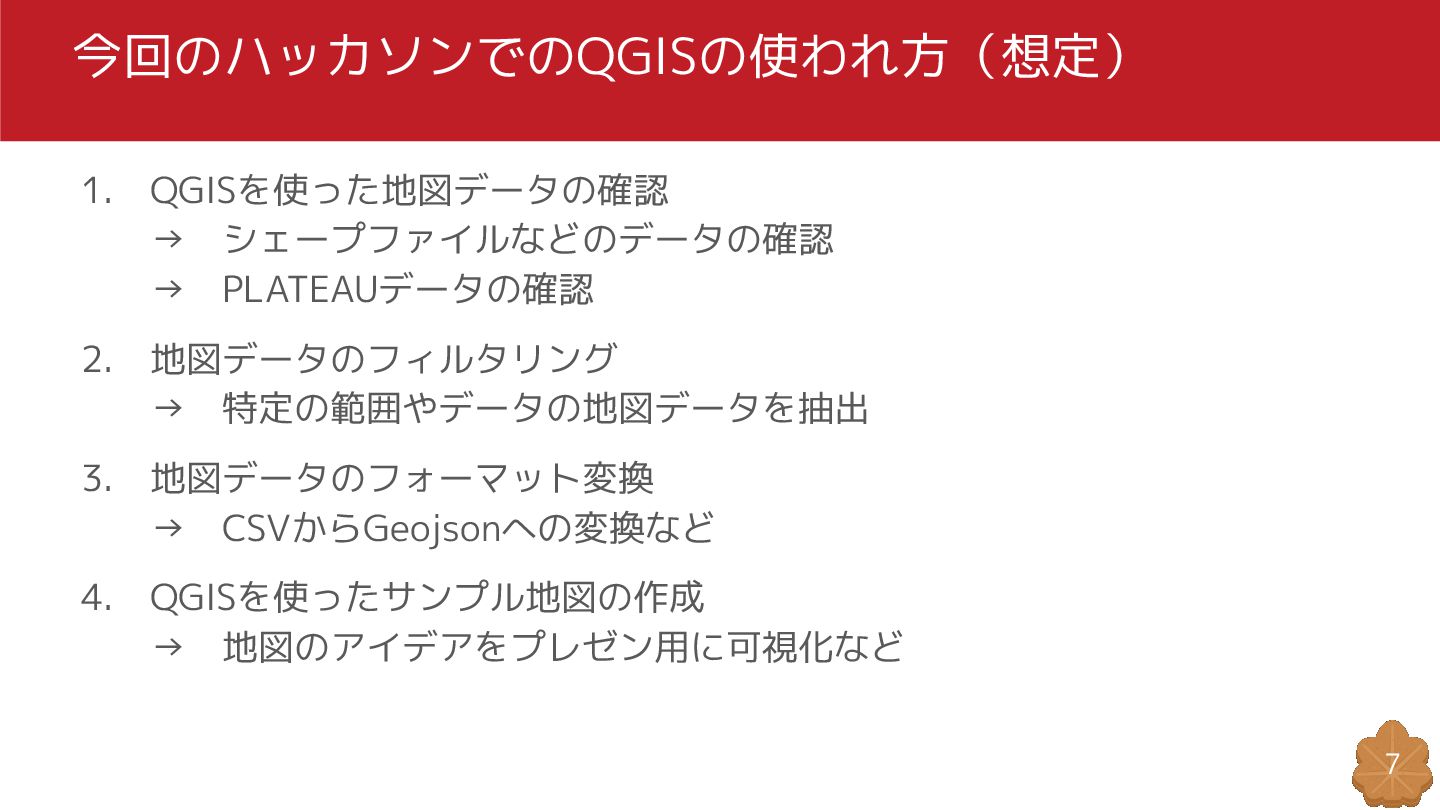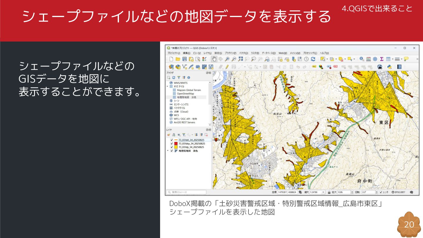 2025年9月13日に開催された広島県DoBoxデータチャレンジ2025で実施したQGISハンズオンの資料です。