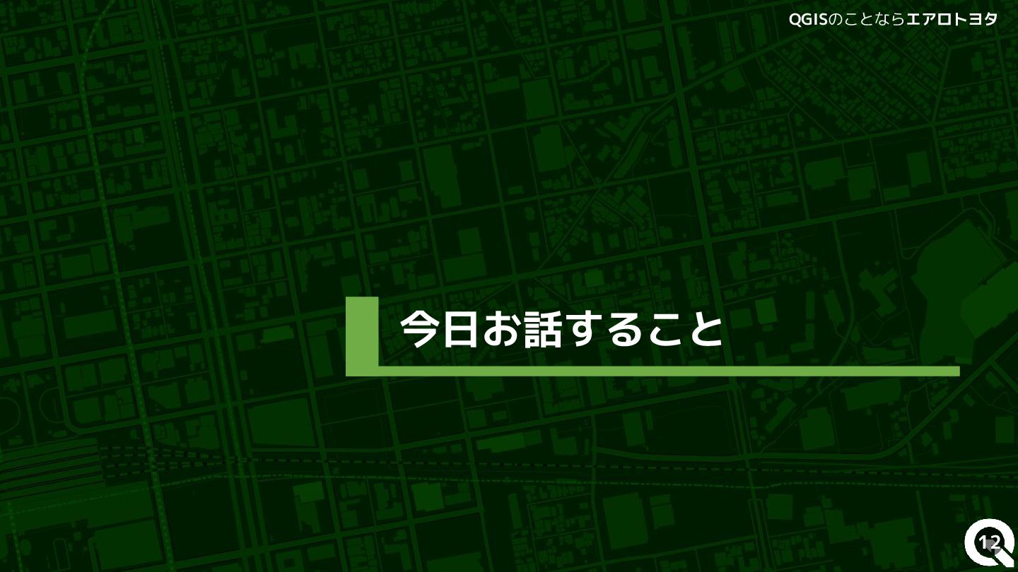 11 QGISのことならエアロトヨタ 11 https://www.aerotoyota.co.jp/spatialinfo/qgis/ 様々なQGIS活用講座を 実施しています