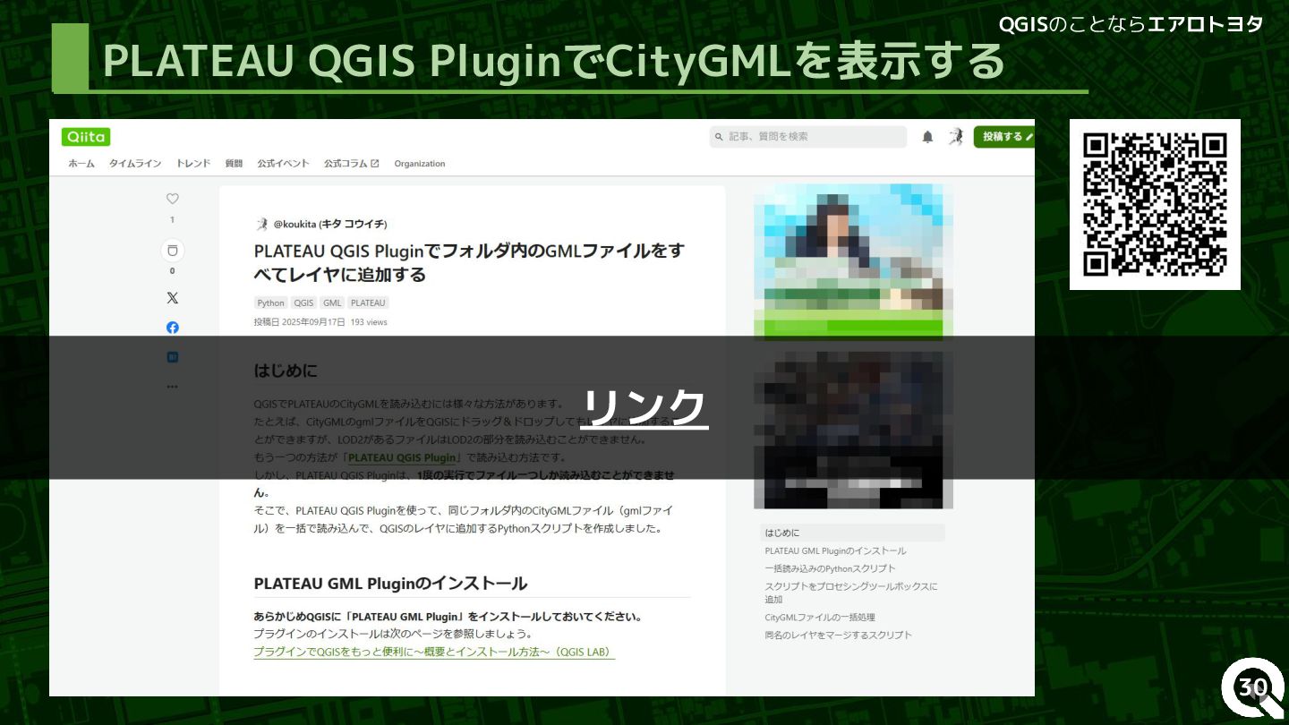 30 QGISのことならエアロトヨタ PLATEAU QGIS PluginでCityGMLを表示する リンク