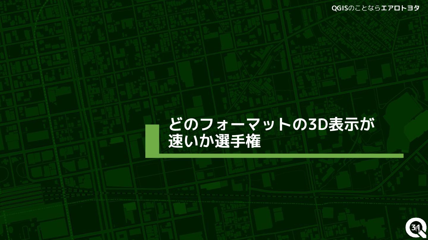31 QGISのことならエアロトヨタ どのフォーマットの3D表示が 速いか選手権
