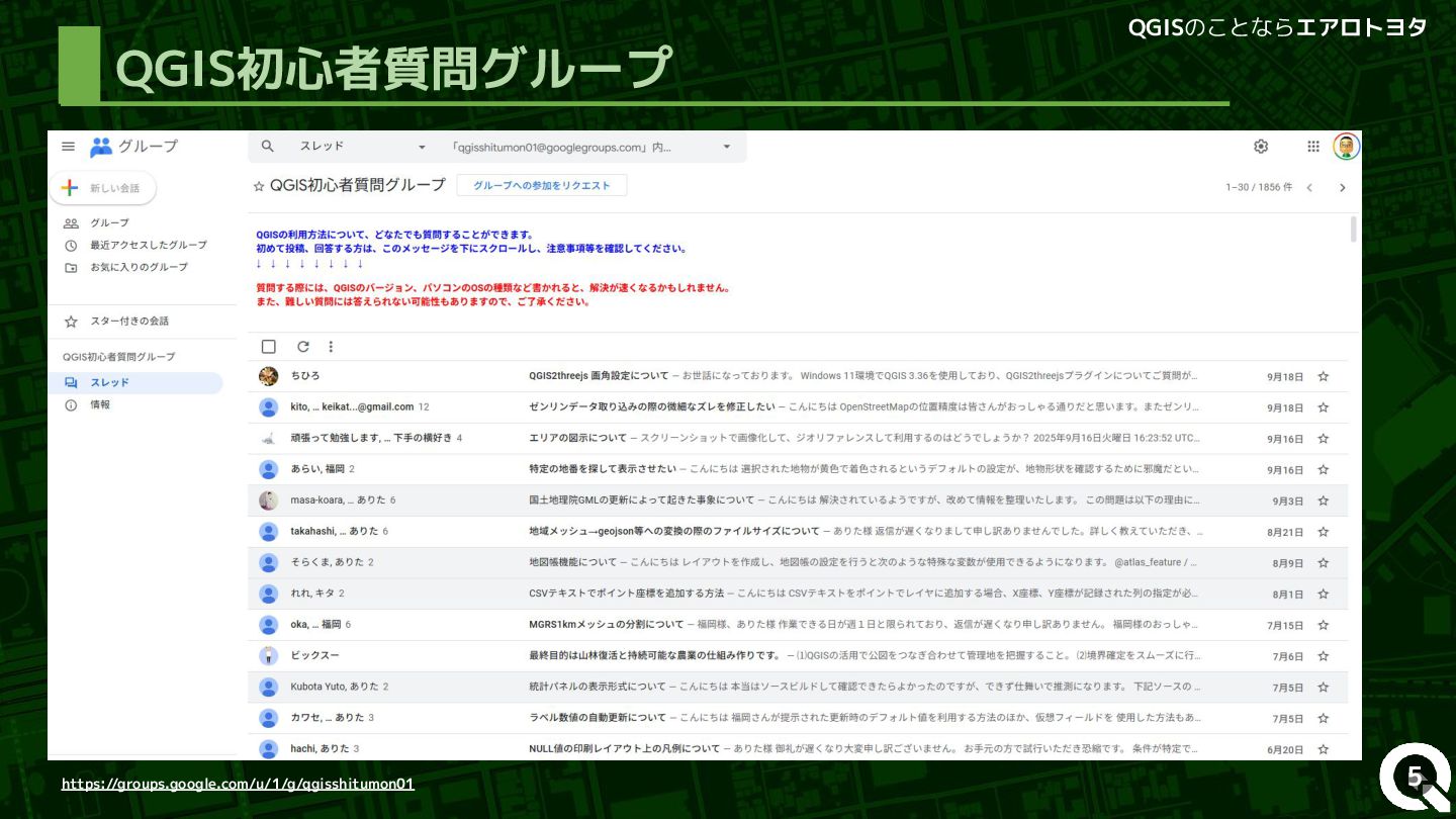 5 QGISのことならエアロトヨタ QGIS初心者質問グループ https://groups.google.com/u/1/g/qgisshitumon01
