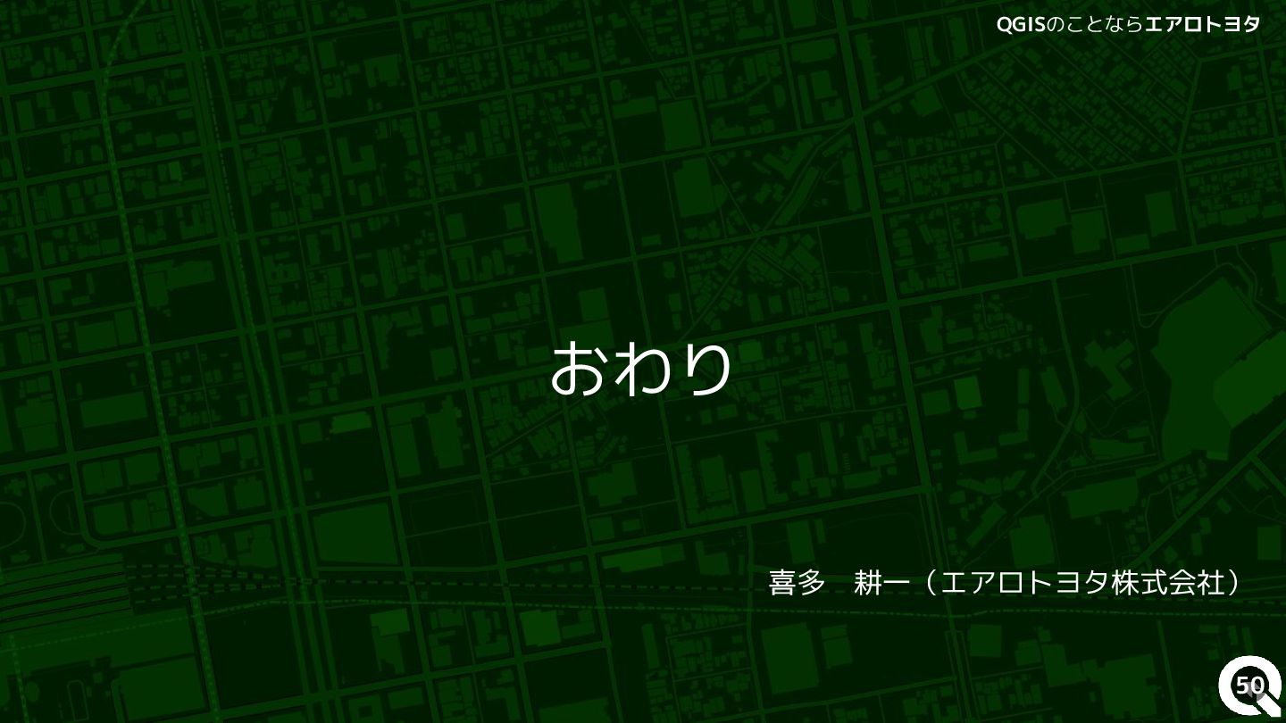 50 QGISのことならエアロトヨタ おわり 喜多 耕一(エアロトヨタ株式会社)