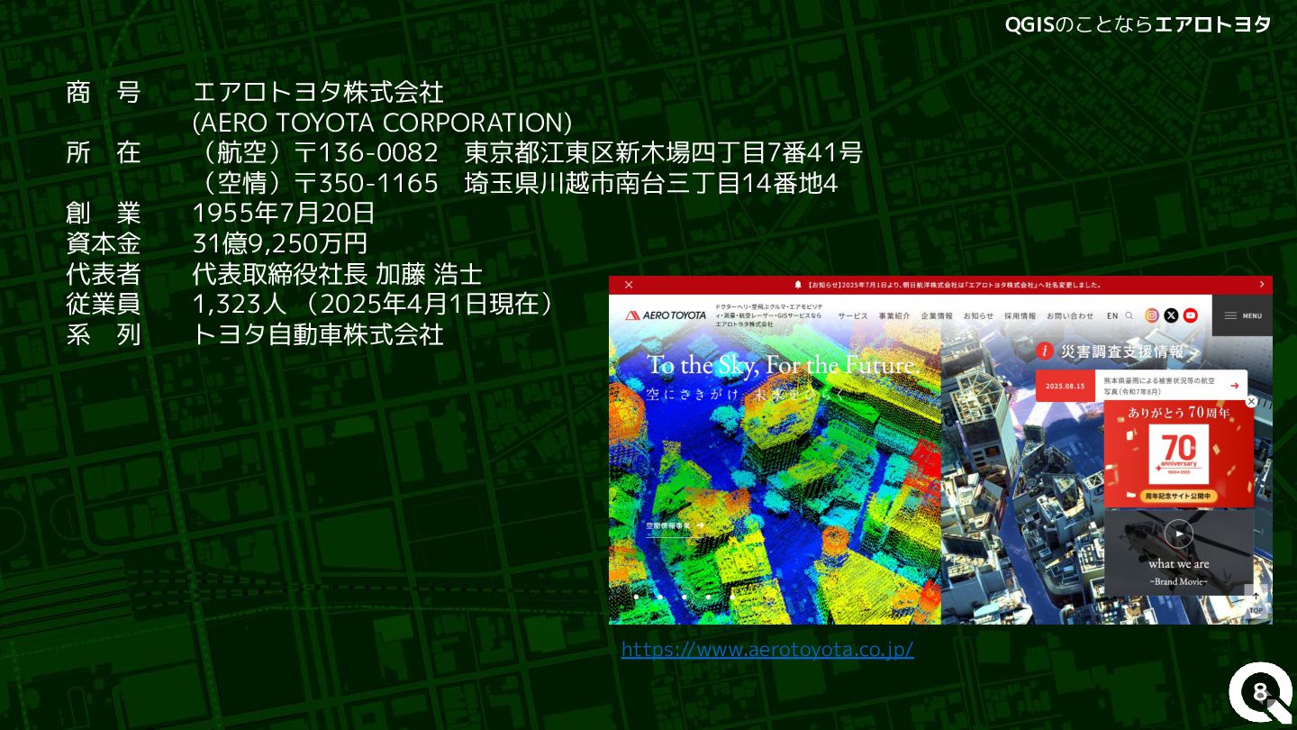 9 QGISのことならエアロトヨタ 9 2025年7月1日に 朝日航洋株式会社から エアロトヨタ株式会社 へ社名変更 よっ!エアロさん!