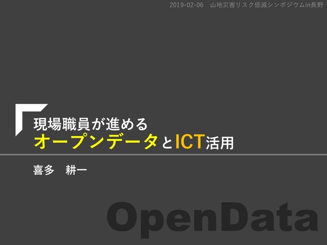 2019-02-06 山地災害リスク低減シンポジウムin長野 OpenData この内容は、スライドをインターネットで 公開しています。是非参考にしてください。