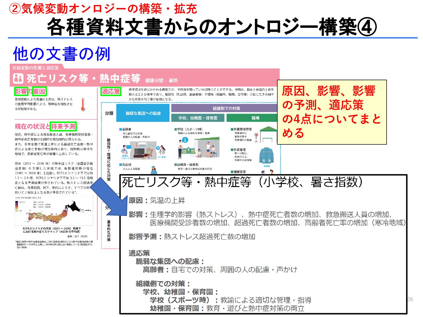 事象が引き起こす影響の予 測 4. 事象に関する対策法(適応 ②気候変動オンロジーの構築・拡充 25