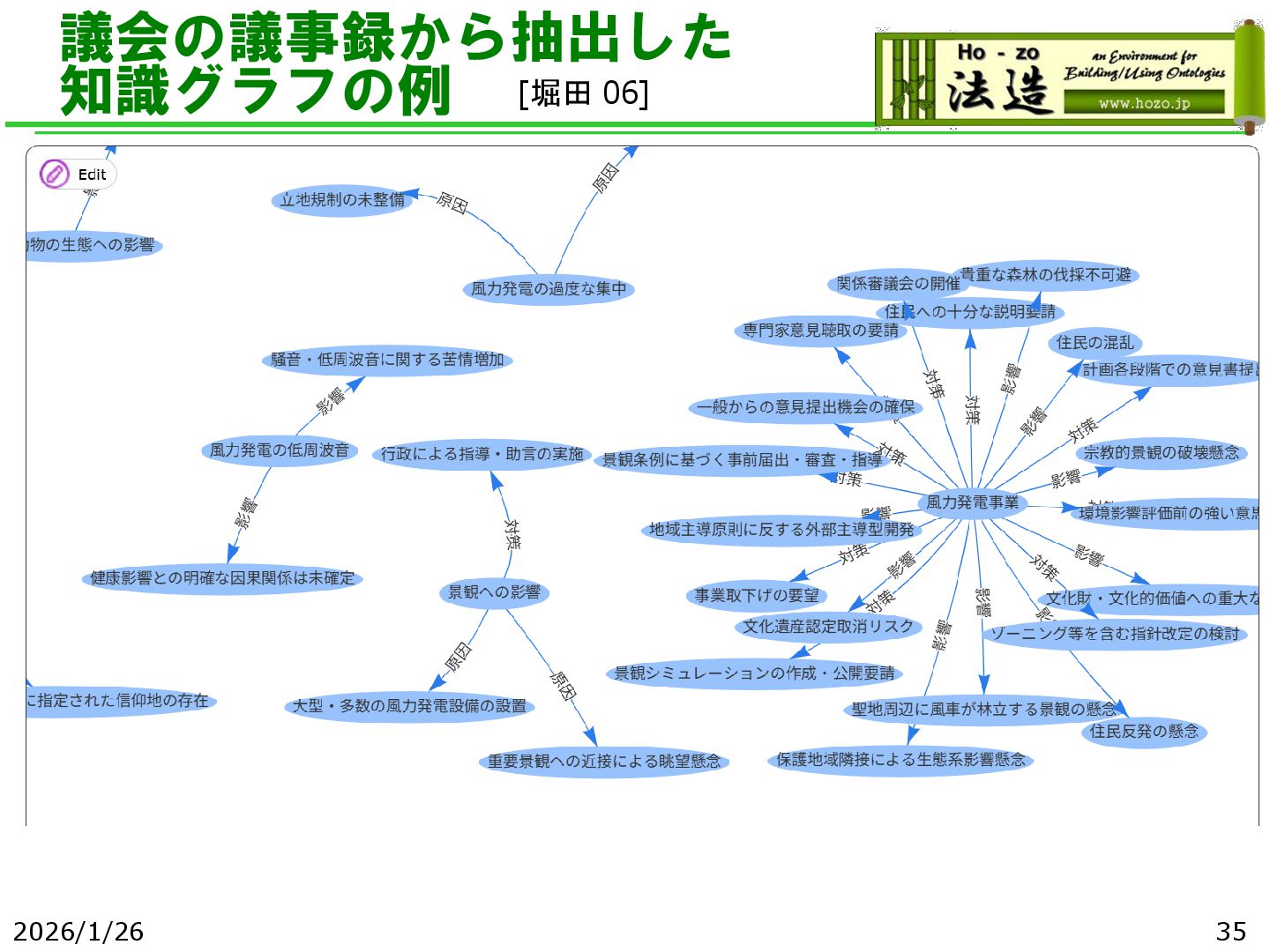 議会の議事録から抽出した 知識グラフの例 2026/1/26 35 [堀田 06]