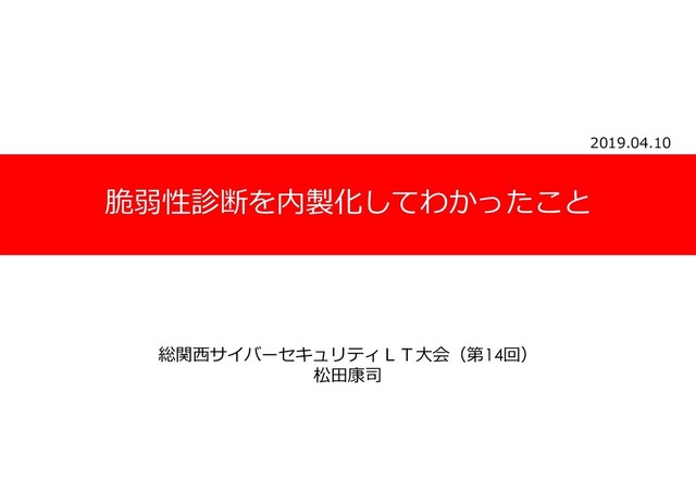 2019.04.10 脆弱性診断を内製化してわかったこと 総関西サイバーセキュリティLT大会(第14回) 松田康司