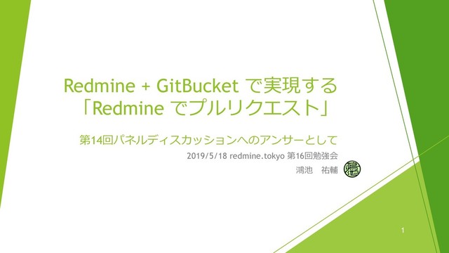 REST API u 設定でRedmineプロジェクト-GitBucketリポジトリ紐づけ u Issue/PRはRedmineで作成し、番号をそろえてGitBucketにコピー u PRを表す専⽤トラッカーを⽤意 u 他はすべてIssueにする u GitBucket側ではIssue/PRを触らない u Redmine側で作成したもののミラーリングに徹する u GitBucketは⿊⼦に徹する(ことを⽬指す) 16 5/2に4.0対応︕ ⇒再検証…