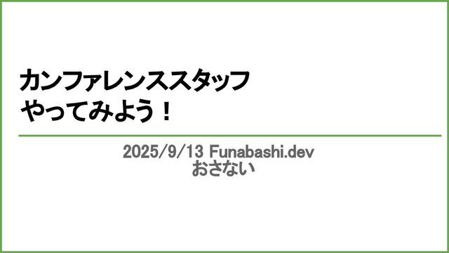 カンファレンススタッフ やってみよう! 2025/9/13 Funabashi.dev おさない