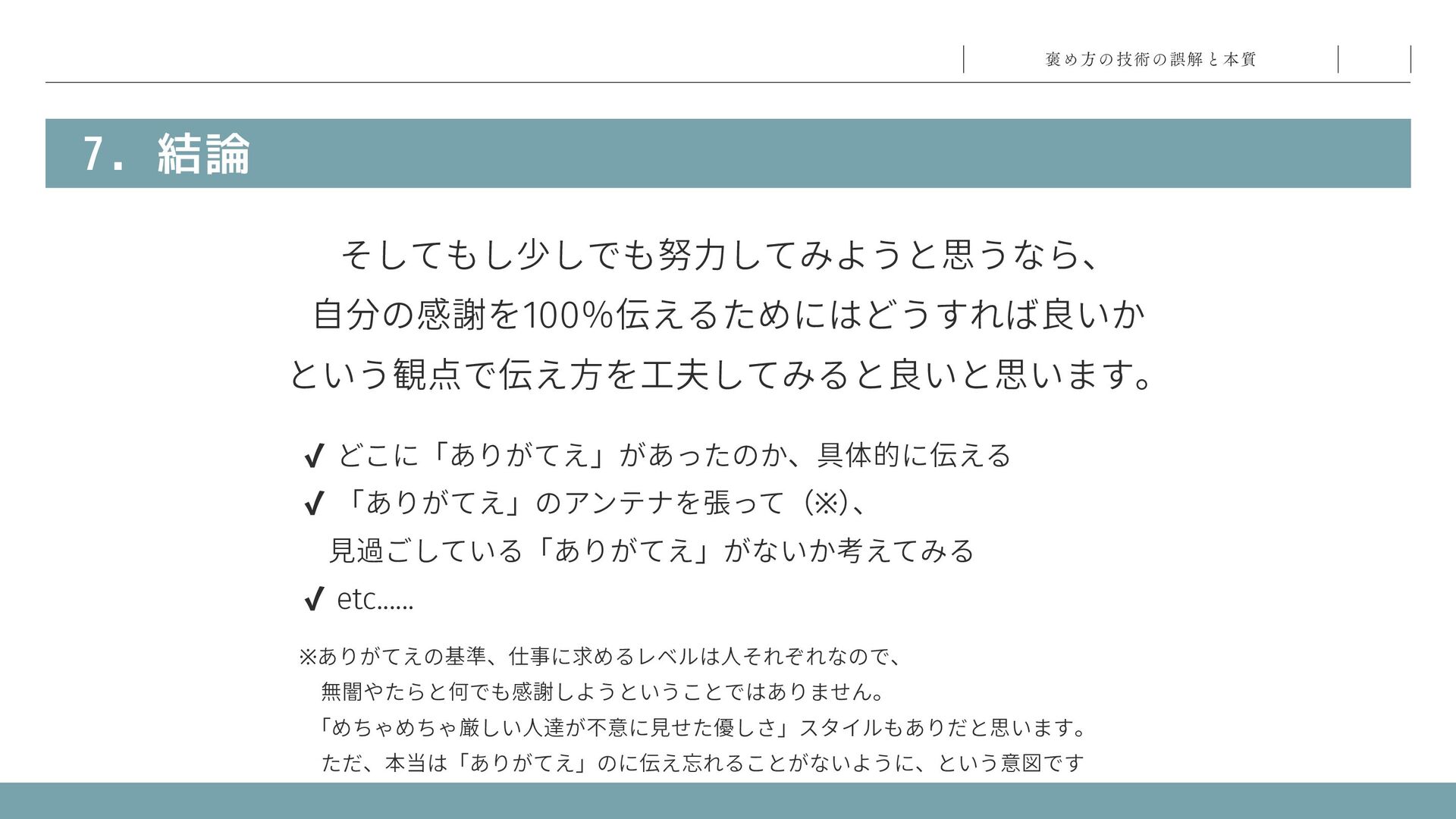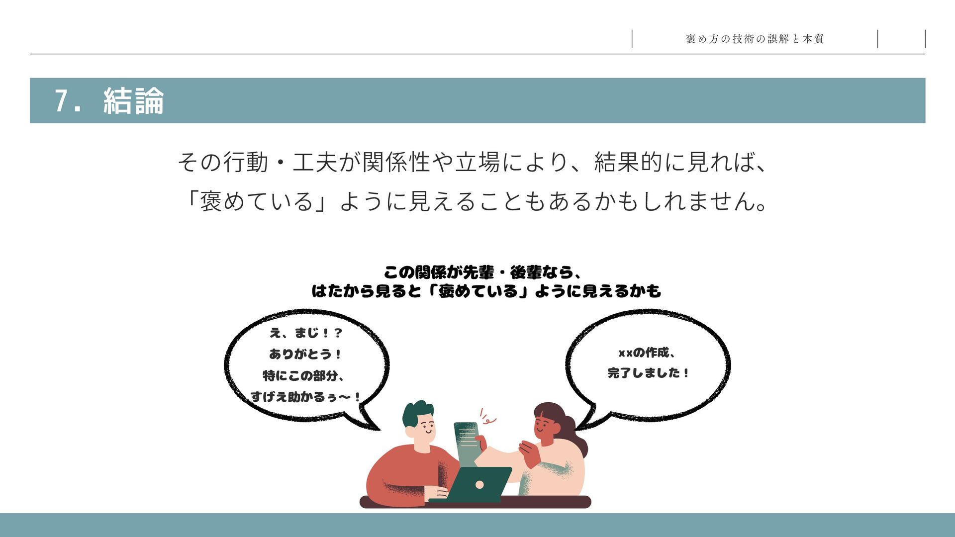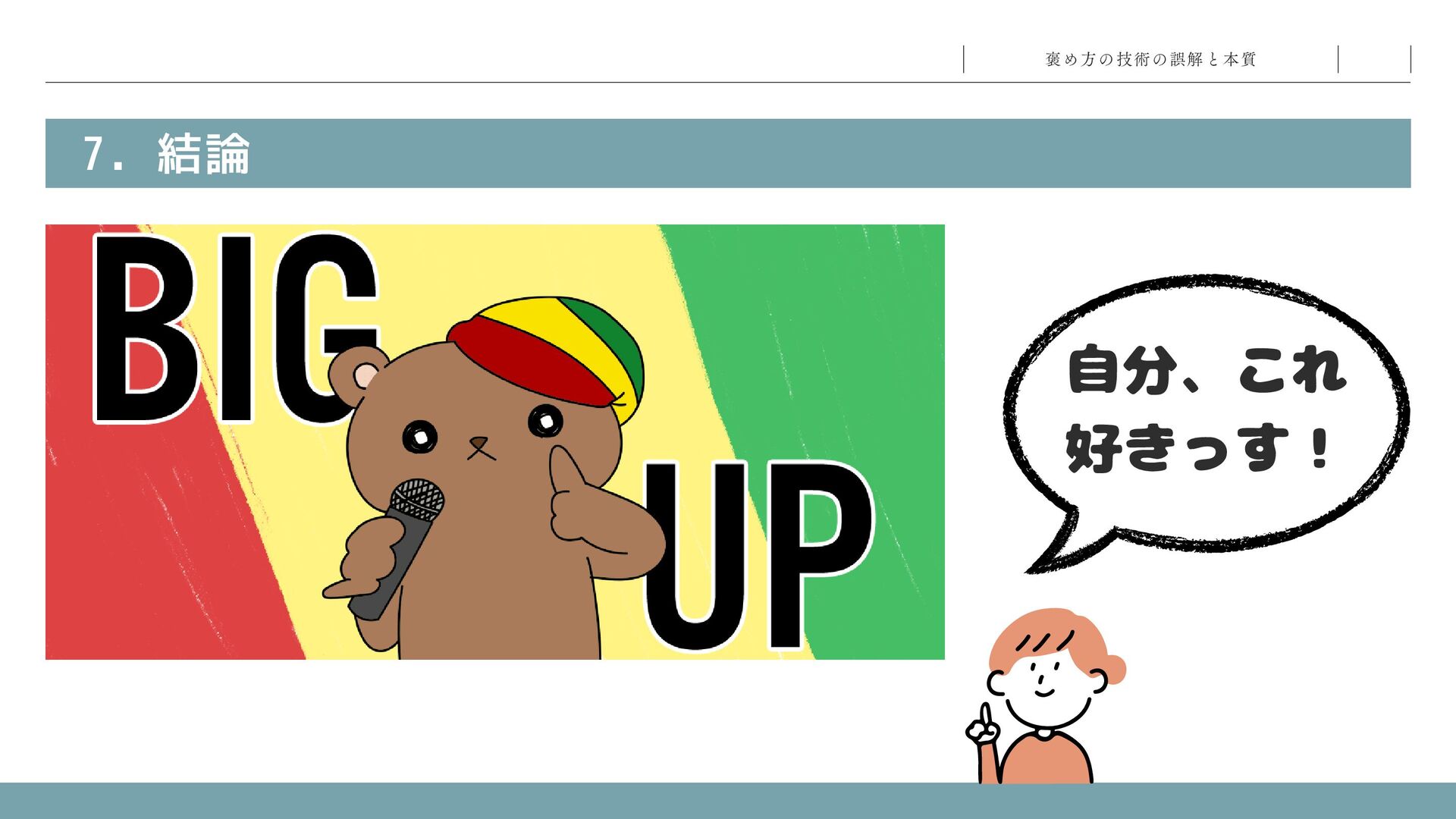 褒め方の技術の誤解と本質 7. 結論 自分、これ 好きっす!
