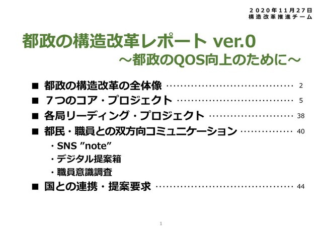 東京都構造改革推進チームが2020/11/27に公表した「都政の構造改革」に関するレポートです。