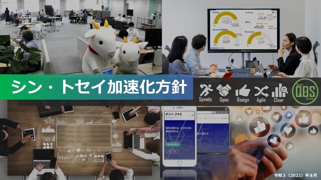達成 ピッチイベント 「UPGRADE with TOKYO」実施 未来型オフィス プロトタイプ稼働 (2021.3~) @都庁第一本庁舎24階 01 ☞p5 総務事務センターへの 事務集約 推進中 、 デジタル提案箱(2020.10~) 約9か月で834件の提案 職員意識調査(2020.11~12) 54%の職員が環境に不満 オープンデータ・ラウンドテーブル開催 「改革の現在地」を職員の皆さんと共有し、「シン・トセイ」戦略を更に展開する「加速化方針」 スタートアップ支援拠点 TOKYO UPGRADE SQUARE開設(2021.1) 計画的・戦略的にデジタル化 各局等のデジタル化の取組加速支援 2021 ・SaaSによる電子申請基盤の拡充 ・ユーザーレビュー機能の実装 ・「スタートアップ 協働戦略」 (仮称)策定 ・#シン・トセイポータル 職員向けサイト開設 ・デジタル提案箱+へ バージョンアップ 現場の声やデジタル時代のニーズを起点に 契約・会計制度を見直し ・今年度5部門、来年度15部門へ オフィス展開に向けた準備を加速 ▲50% ▲98% ・都知事杯ハッカソン (仮称)開催 ・ユーザーテスト実践 契約・支出事務の 一連のデジタル化 国への提案要求等を実施 「自分達のオフィスは自分達で作る」 新しい働き方を支える未来型オフィスを全庁展開 02 ☞p9 「上司は部下に紙で資料を求めない」 業務環境と仕事の進め方を変え、5つのレスを徹底 03 ☞p14 デジタルファースト条例・推進計画に基づき 全ての手続の原則デジタル化を推進 04 ☞p17 官民協働の成功体験を積み重ね スタートアップ・シビックテック等との協働を深化 05 ☞p21 課題を洗い出し、集中的な検討で デジタル時代にふさわしい契約・会計制度へ 06 ☞p24 各局リーディング・プロジェクトの実践 5つのキーワードを徹底推進 07 ☞p27 コミュニケーションツールを拡充し 職員参加による改革ムーブメントを創出 主要169手続のデジタル化に優先着手 デジタルファースト条例・推進計画 全ての行政手続(約28,000プロセス) を原則デジタル化する方針決定 プロジェクト選定 プロジェクト実践 5つのキーワードを徹底推進 ・効果を横展開 ・新たなプロジェクトへと派生 「スマート東京」推進チーム など全庁横断の連携体制を 最大限活用して プロジェクトを強力に推進 + ・事業所デジタル化全面 展開 (3つのステップ) 「考えて・ツールを使って・ 変革する」 ・ディスプレイ追加配備 ・予算・人事・計画業務 ペーパーレス化 ・意識改革の徹底 ・FAXレス・電子決定 未実施部門や原因・課題 の洗い出し 100% 各局による事業参画を拡大 年度内に改革の実施方針取りまとめ 2020 2021 2022~ 2021 2021 稼働 + ・スピーディーで生産的 な新しい働き方を実践 ・キャッシュレス・タッチレスも着実に推進 + 2021目標 (2020) (2021.6) (2021.6) 3 全職場へ浸透 5部門に展開 15部門に展開