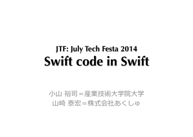 *year = @"2014"; NSString *event = [event stringByAppendingString:year]; NSString *longName = @"July Tech Festa"; NSString *message = [NSString stringWithFormat:@"%@: %@", name, longName]; // SwiF var name = "JTF" var year = "2014" var event = name + year // JTF2014 var longName = "July Tech Festa" var message = "\(name): \(longName)" // JTF: July Tech Festa let x = 10, y = 3 let result = "\(x) / \(y) = \(x / y)" // 10 / 3 = 3 17