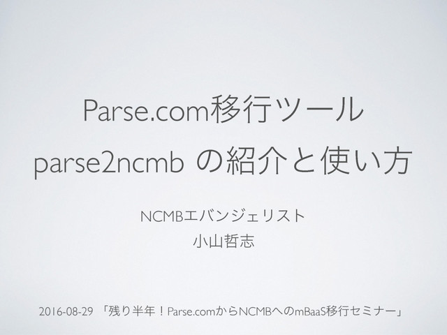 Parse.comҠߦπʔϧ parse2ncmb ͷհͱ͍ํ NCMBΤόϯδΣϦετ খࢁࢤ 2016-08-29 ʮΓʂParse.com͔ΒNCMBͷmBaaSҠߦηϛφʔʯ