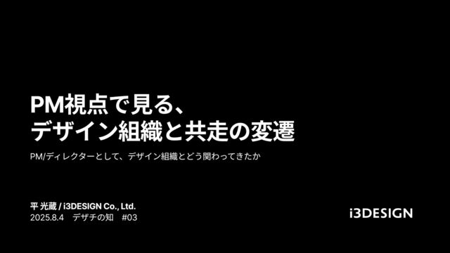 PM視点で見る、 デザイン組織と共走の変遷 PM/ディレクターとして、デザイン組織とどう関わってきたか 平 光蔵 / i3DESIGN Co., Ltd. 2025.8.4