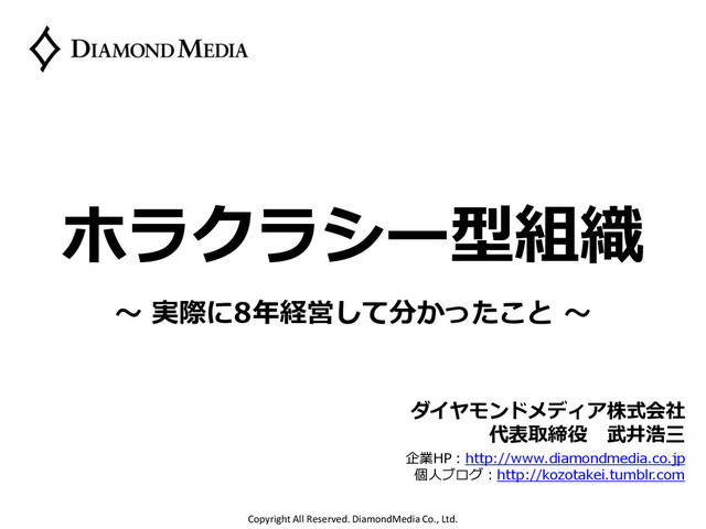2008年からホラクラシー型組織を実際に経営しているダイヤモンドメディア株式会社。