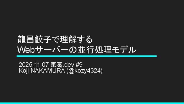 龍昌餃子で理解する Webサーバーの並行処理モデル 2025.11.07 東葛.dev #9 Koji NAKAMURA (@kozy4324)