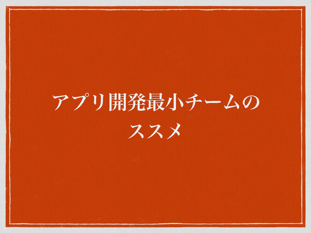 ## 話した内容 - 開発の大まかな流れ - フィジビリも兼ねていた「最小チーム開発」のノウハウやナレッジなどの共有 - 個人的観点での感想・問題点・注意点など
