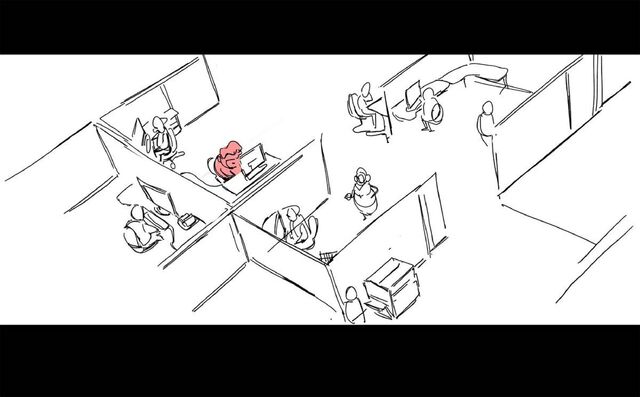 Slapstick comedy.... A series of unpleasant events happening to a new worker at his first day.