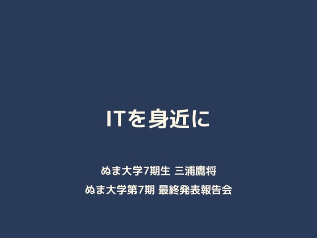 ITを身近に ぬま大学7期生 三浦鷹将 ぬま大学第7期 最終発表報告会