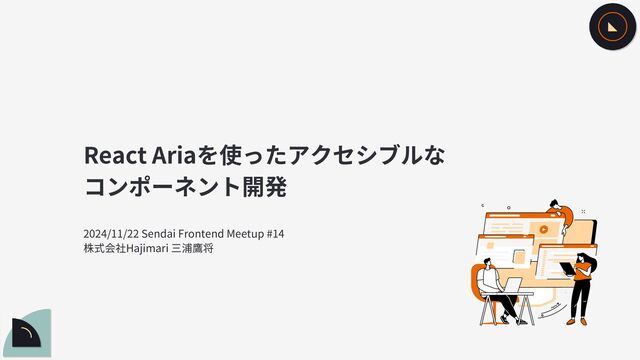 React Ariaを使ったアクセシブルな コンポーネント開発 2024/11/22 Sendai Frontend Meetup #14 株式会社Hajimari 三浦鷹将