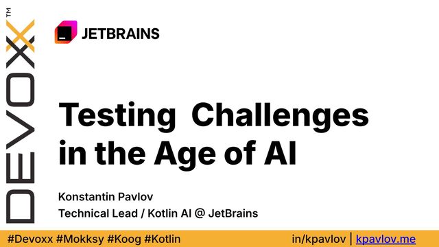 The presentation "Testing Challenges in the Age of AI" discusses the evolving landscape of software engineering with the rise of AI.