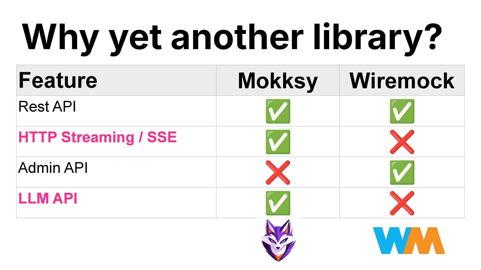 9. Why yet another library? Feature Mokksy Wiremock Rest API ✅