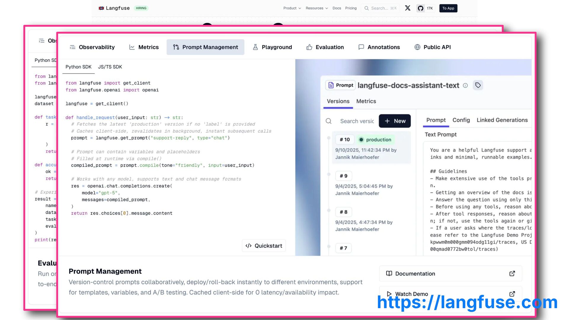 It also covers prompt testing with promptfoo and end-to-end testing with Langfuse.