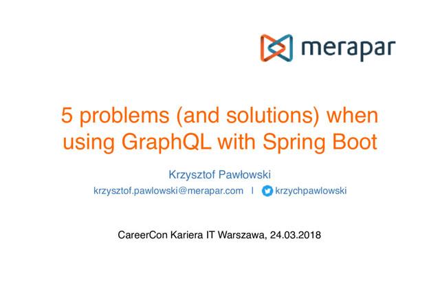 Lecturer (PJATK), Java Trainer (infoShare Academy) ‣7+ years of experience in Java Development ‣using GraphQL for over a year now ‣E-mail: [email protected] ‣Twitter: krzychpawlowski