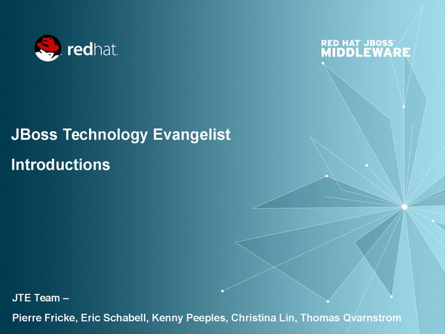 introduction of JTEs (5 Minutes) • Each JTE discusses their brief background, their product responsibility and where to find their individual content (5 minutes each - 20 minutes) • Some of the upcoming engagements for the JTEs (5 minutes) • Collaboration Discussion (15 minutes) Videos, Blogs, Articles, SME Spaces, JTE Space, Email list and Conference Calls which should address Where to provide feedback on existing material and new stuff How to Share and contribute additional content • Open up for questions/feedback (15 minutes)